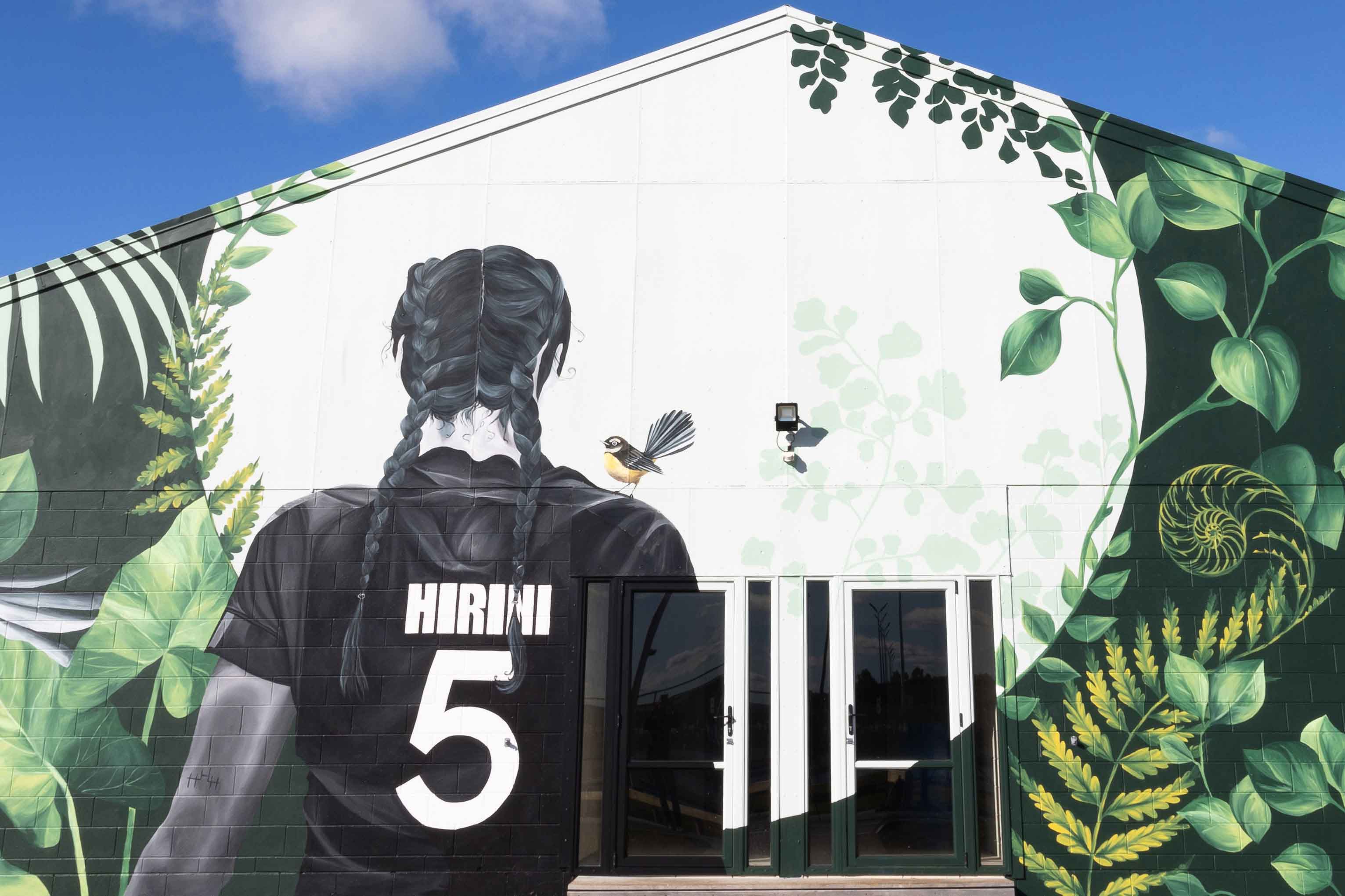 The mural honours local legend Sarah Hirini, one of the world’s greatest ever rugby sevens players. One of New Zealand’s greatest ever athletes. The pride of Pāpāmoa.